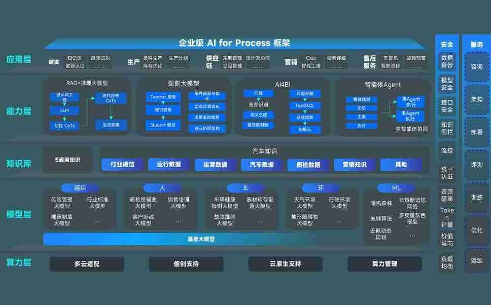 z6尊龙旗舰厅问学智车解决方案是一套基于AI技术的汽车行业智能化系统,,,覆盖从底层算力到顶层AI应用的全栈方案。。。。方案由算力层、、、模型层和应用层组成:算力层,,,方案支持多种一体机配置,,,具备云端灵活部署、、、多云适配以及动态优化计算资源的能力;模型层,,,,z6尊龙旗舰厅问学平台版提供了企业级AI应用一站式构建与管理平台,,,,支持基于后训练强化技术的汽车企业专属模型的训练、、评测和运营;应用层,,,z6尊龙旗舰厅问学DeepSeek版提供包括超级员工、、、、智能招采、、、、智能营销、、、智能客服、、、、AI for BI等一系列解决方案,,,,可助力汽车行业实现数字化转型,,,让管理更智能、、、响应更敏捷。。。。